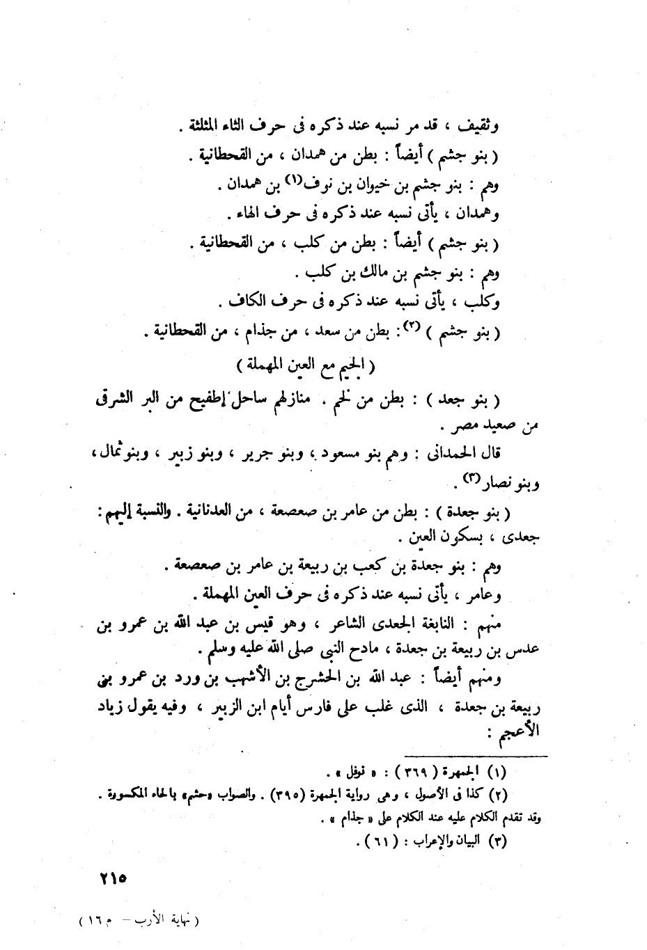 716 - بنو جعدة - بطن من لخم، منازلهم ساحل اطفيح من البر الشرقي من صعيد مصر، قال الحمداني: وهم بنو مسعود، وبنو جرير، وبنو زبير، وبنو ثمال، وبنو نهار.