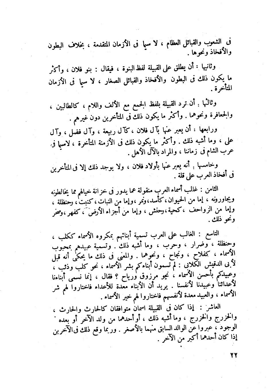 وخامسها: أنه يعبر عنها بأولاد فلان ولا يوجد ذلك إلا في المتأخرين في أفخاذ العرب على قلة.