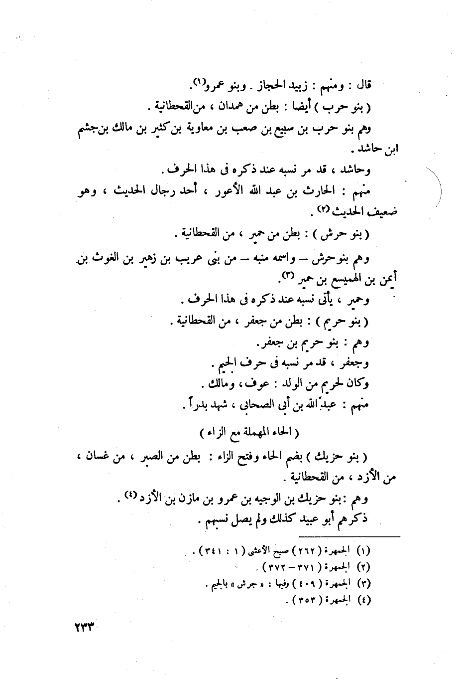 783 - بنو حرب - أيضاً - بطن من همدان من القحطانية، وهم بنو خرب ابن سبيع بن معاوية بن كثير بن مالك بن جشم بن حاشد، وحاشد قد تقدم نسبه عند ذكره في هذا الحرف، منهم الحارث بن عبد الله الأعور أحد رجال الحديث وهو ضعيف الحديث.