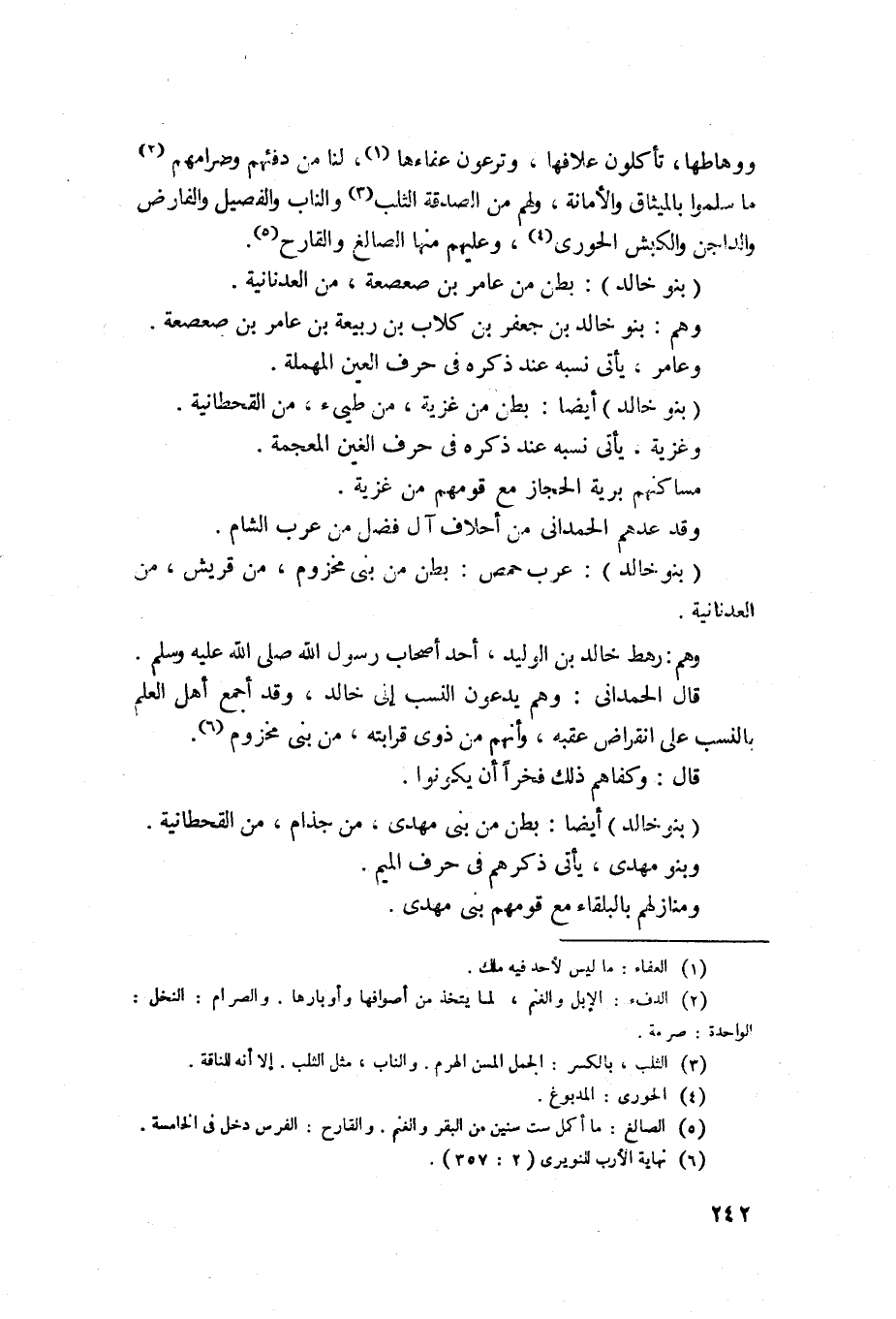 833 - بنو خالد عرب حمص، بطن من بني مخزوم من قريش من العدنانية وهم رهط خالد بن الوليد أحد أصحاب رسول الله صلى الله عليه وسلم قال الحمداني: وهم يدعون النسب إلى خالد وقد أجمع أهل العلم بالنسب على انقراض عقبه، وأنه من دوى، وابنه من بني مخزوم. قال: وكفاهم ذلك فخراً أن يكونوا من قريش وقد ذكر الحمداني: أنهم من أحلاف آل فضل عرب الشام.