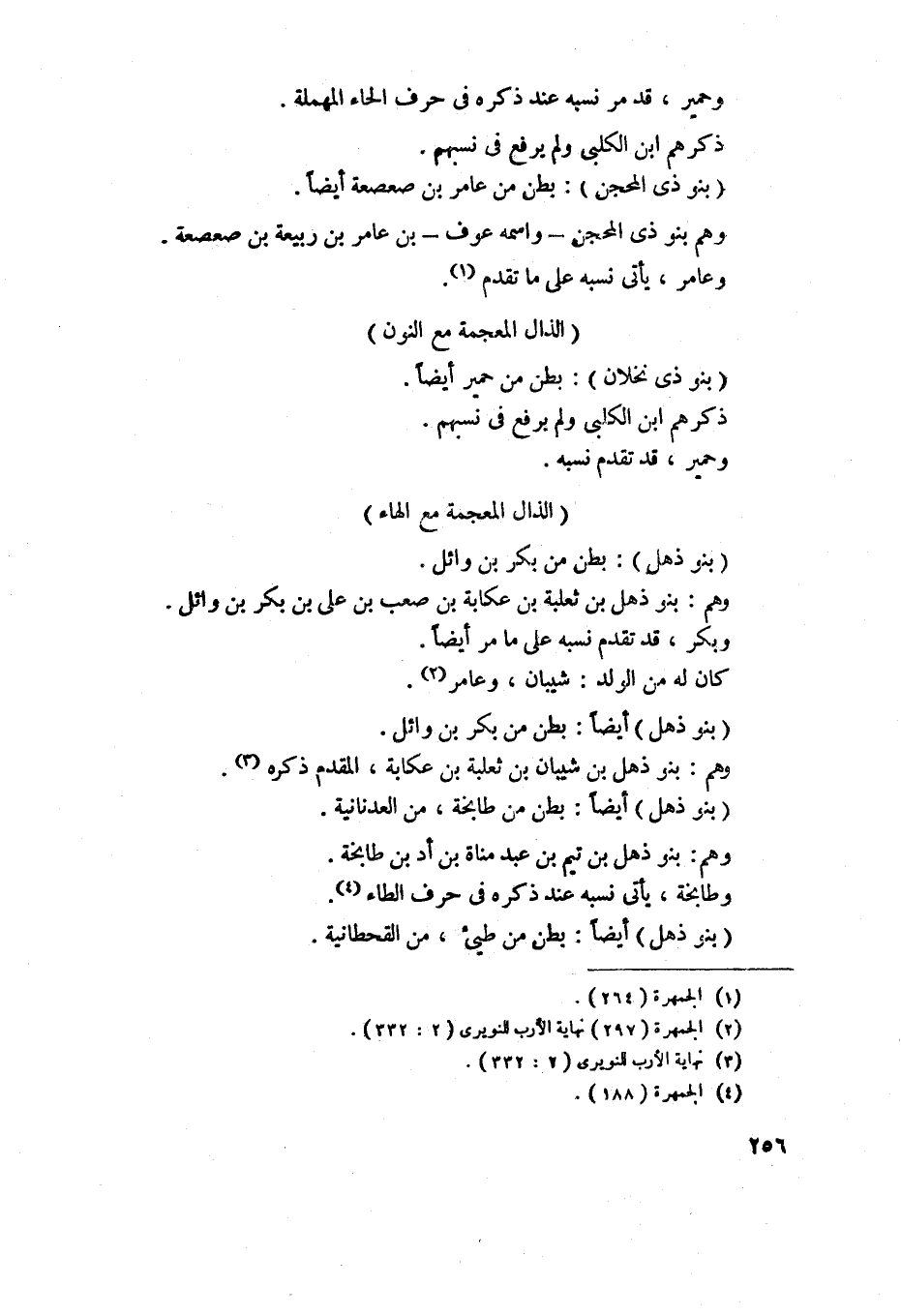 884 - بنو ذهل - أيضاً - بطن من طابخة من العدنانية، وهم بنو ذه لبن تميم بن عبد مناة بن أد بن طابخة، وطابخة يأتي نسبه عند ذكره في حرف الطاء.