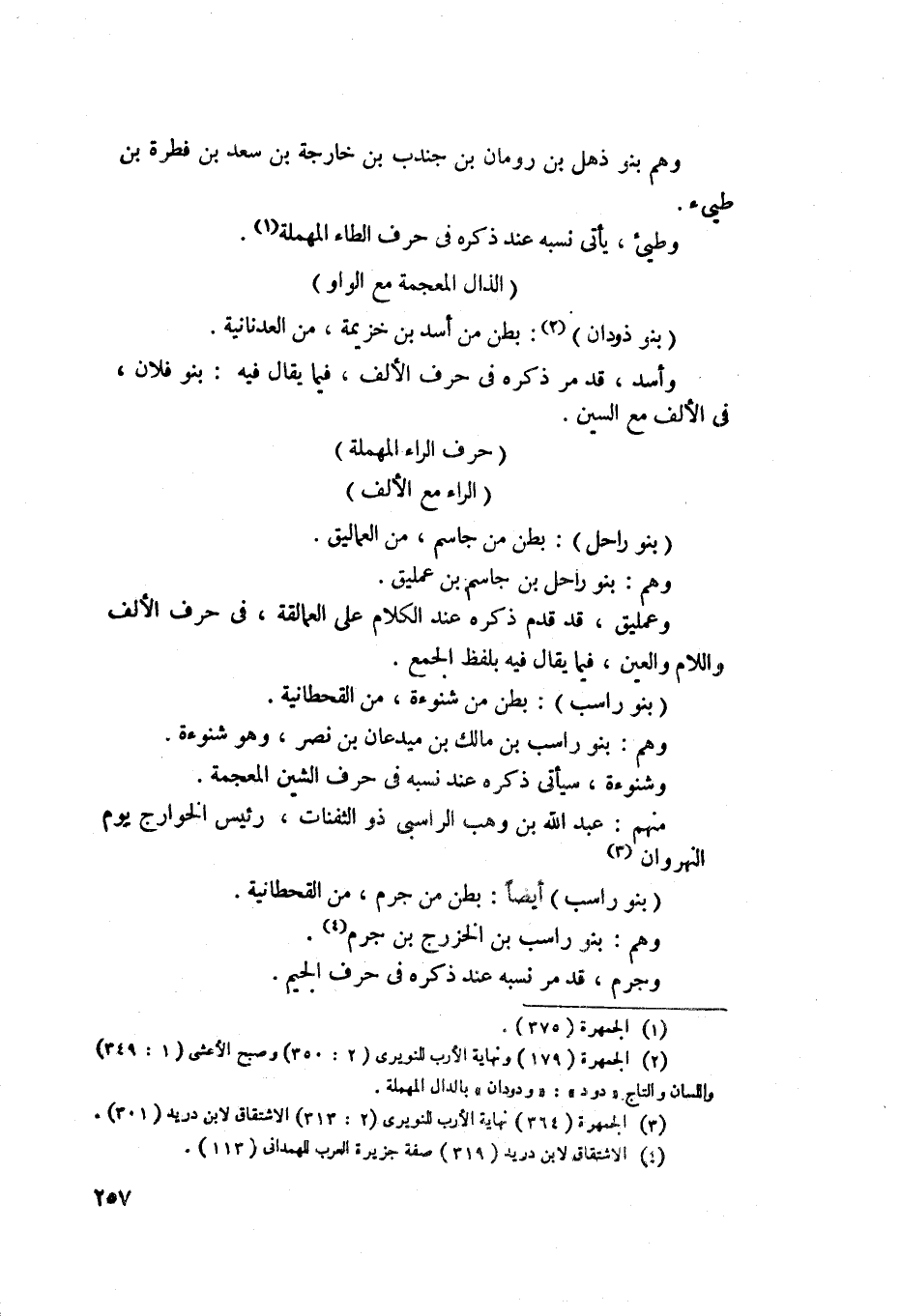 وهم بنو ذهل بن رومان بن جندب بن خارجة بن سعد بن قطرة بن طي، وطي يأتي نسبه عند ذكره في حرف الطاء المهملة.