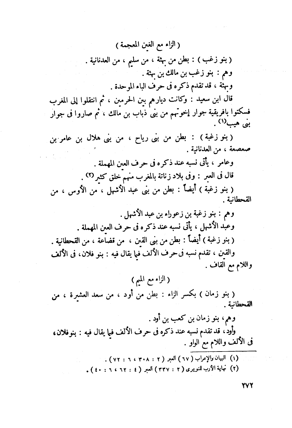 957 - بنو زغبة - أيضاً - بطن من بني القين من قضاعة من القحطانية، والقين تقدم نسبه في حرف الالف فيما يقال فيه بنو فلان في الالف واللام مع القاف.