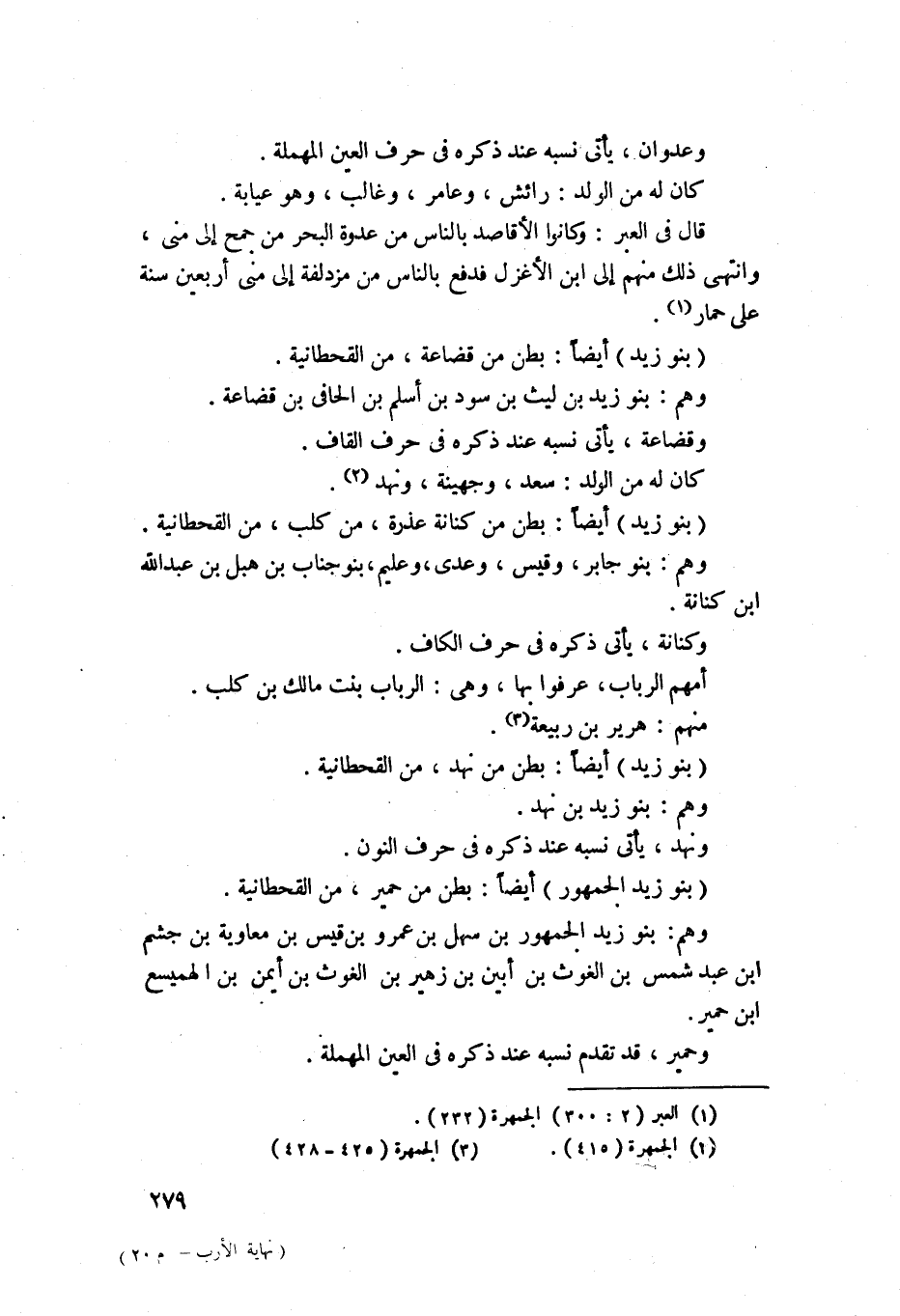 986 - بنو زيد أيضاً - بطن من نهد من قضاعة من القحطانية، وهم بنو زيد بن نهد، ونهد يأتي نسبه عند ذكره في حرف النون.