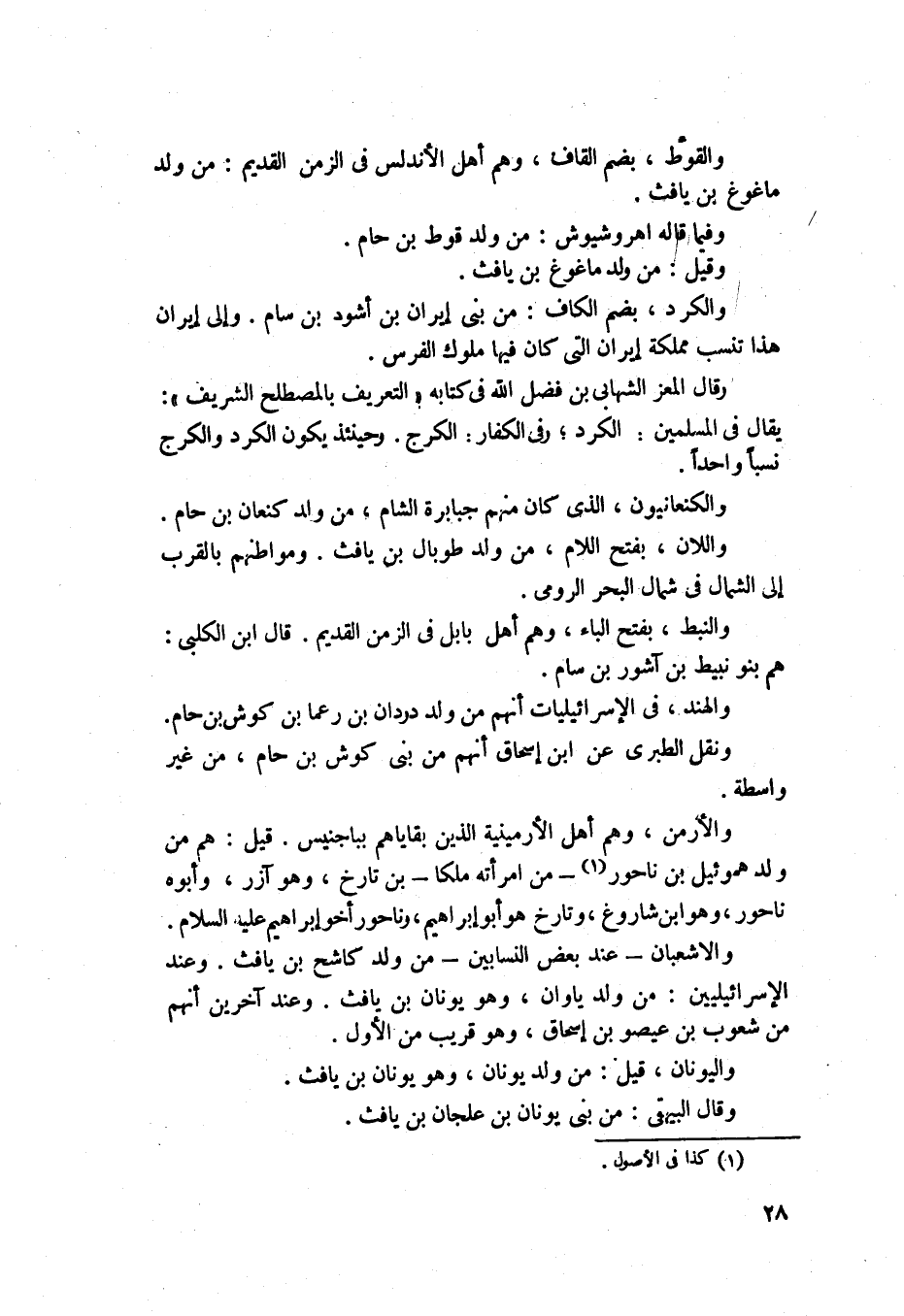والأرمن: وهم أهل الارمينية الذين بقاياهم ببلاد سيس قيل هم من ولد قموئيل بن ناخور امرأته ملكار بن تارخ وهو آزر وأبوه ناخور وهو من شاروغ، وتارخ هو أبو إبارهيم وناخور أخو إبراهيم عليه السلام.