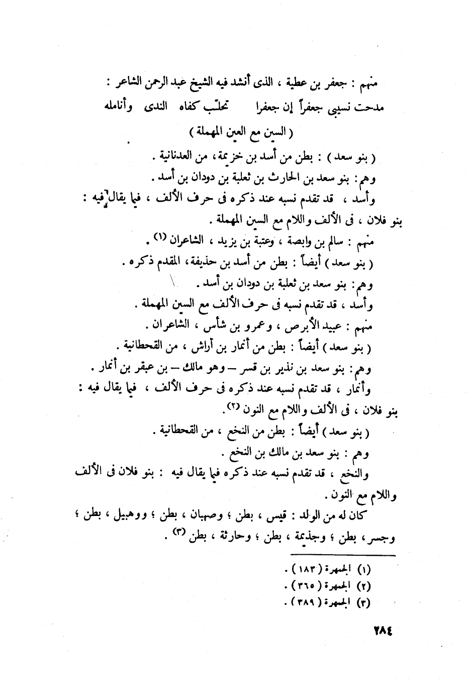 1008 - بنو سعد - أيضاً - بطن من انمار بن أراش من القحطانية، وهم غير سعد بن أراش بن قسر بن عبقر بن انمار، وانمار قد تقدم نسبه عند ذكره في حرف الألف فيما يقال فيه بنو فلان في الألف واللام مع النون.