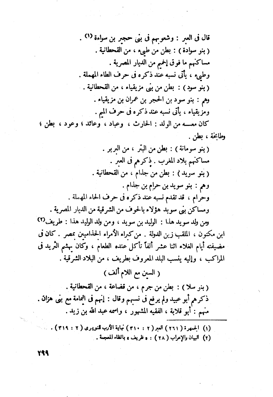 1070 - بنو سلا - بطن من جرم من قضاعة من القحطانية، ذكرهم أبو عبيد ولم يرفع في نسبهم وقال: انهم في اليمامة مع بني هزان بن عيرة، منهم أبو قلابة الفقيه المشهور وأسمه عبد الله بن زيد.