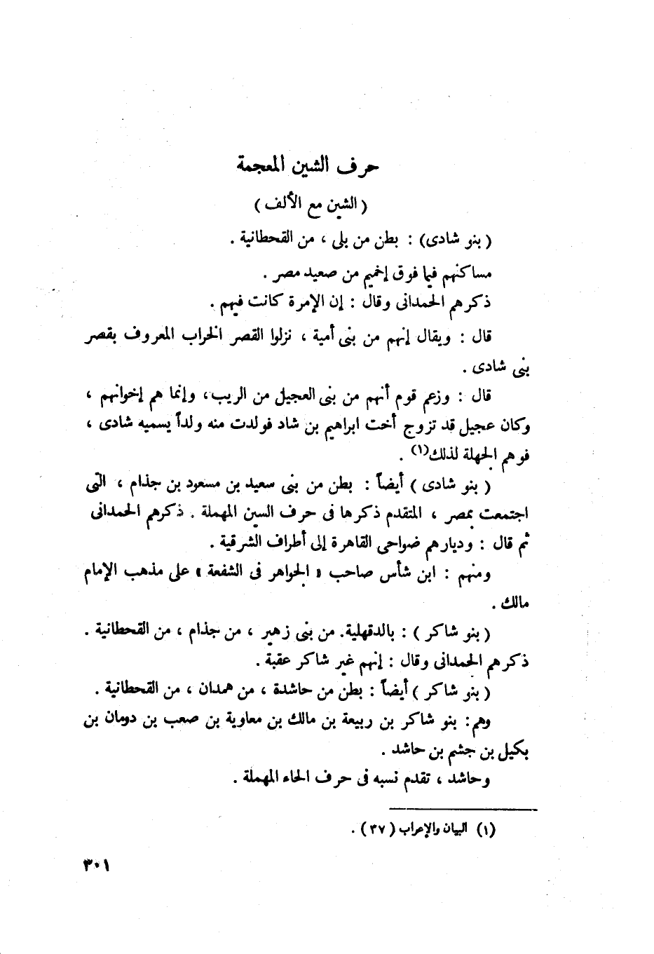 1077 - بنو شاكر - أيضاً - بطن من حاشدة من همدان من القحطانية، وهم بنو شاكر بن ربيعة بن مالك بن معاوية بن دومان بن بكيل بن جشم بن حاشد، وحاشد قد تقدم نسبه عند ذكره في حرف الحاء المهملة،