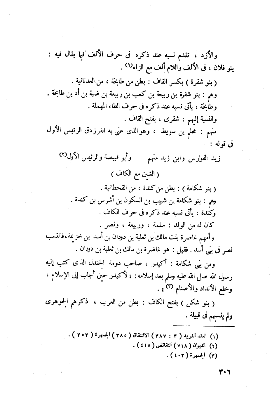 1099 - بنو شكامة - بطن من كندة من القحطانية، وهم بنو شكامة بن شبيب بن السكون بن أشرس بن كندة، وكندة يأتي نسبه عند ذكره في حرف الكاف. كان له من الولد سلمة وربيعة ونصر، وامهم غاضرة بنت مالك بن ثعلبة بن دودان بن أسد بن خزيمة، فانتسب نصر في بني أسد، قيل هو غاضرة ابن مالك بن ثعلبة بن دودان، ومن بني شكامة اكيدر صاحب دومة الجندل الذي كتب اليه رسول الله صلى الله عليه وسلم بعد اسلامه لاكيدر حين أجاب الى الاسلام وخلع الانداد والاصنام.