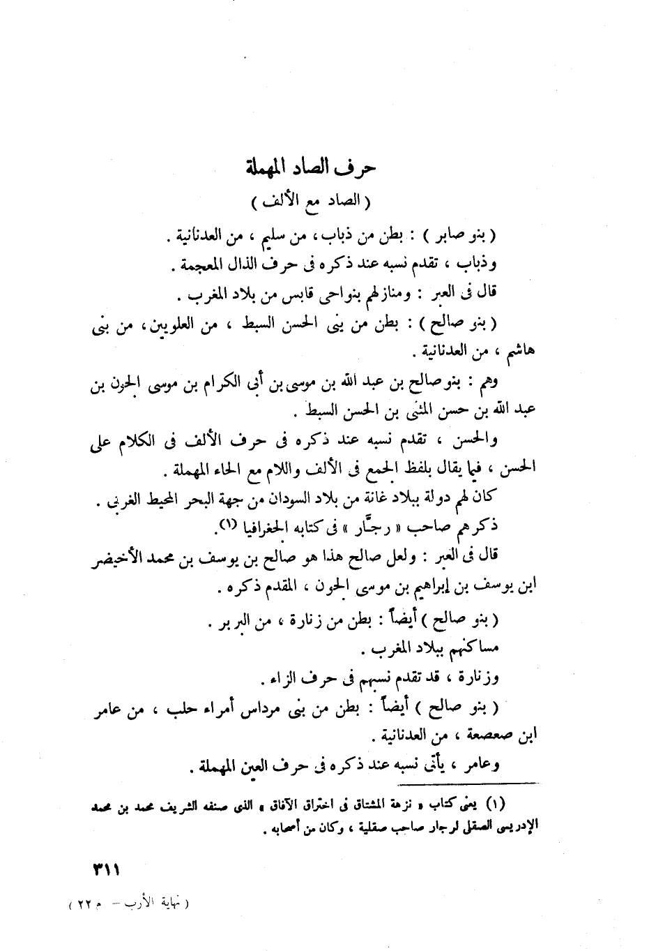 1122 - بنو صالح - أيضاً - بطن من بني مرداس أمراء حلب من عامر بن صعصعة من العدنانية، وعامر يأتي نسبه عند ذكره في حرف العين المهملة.