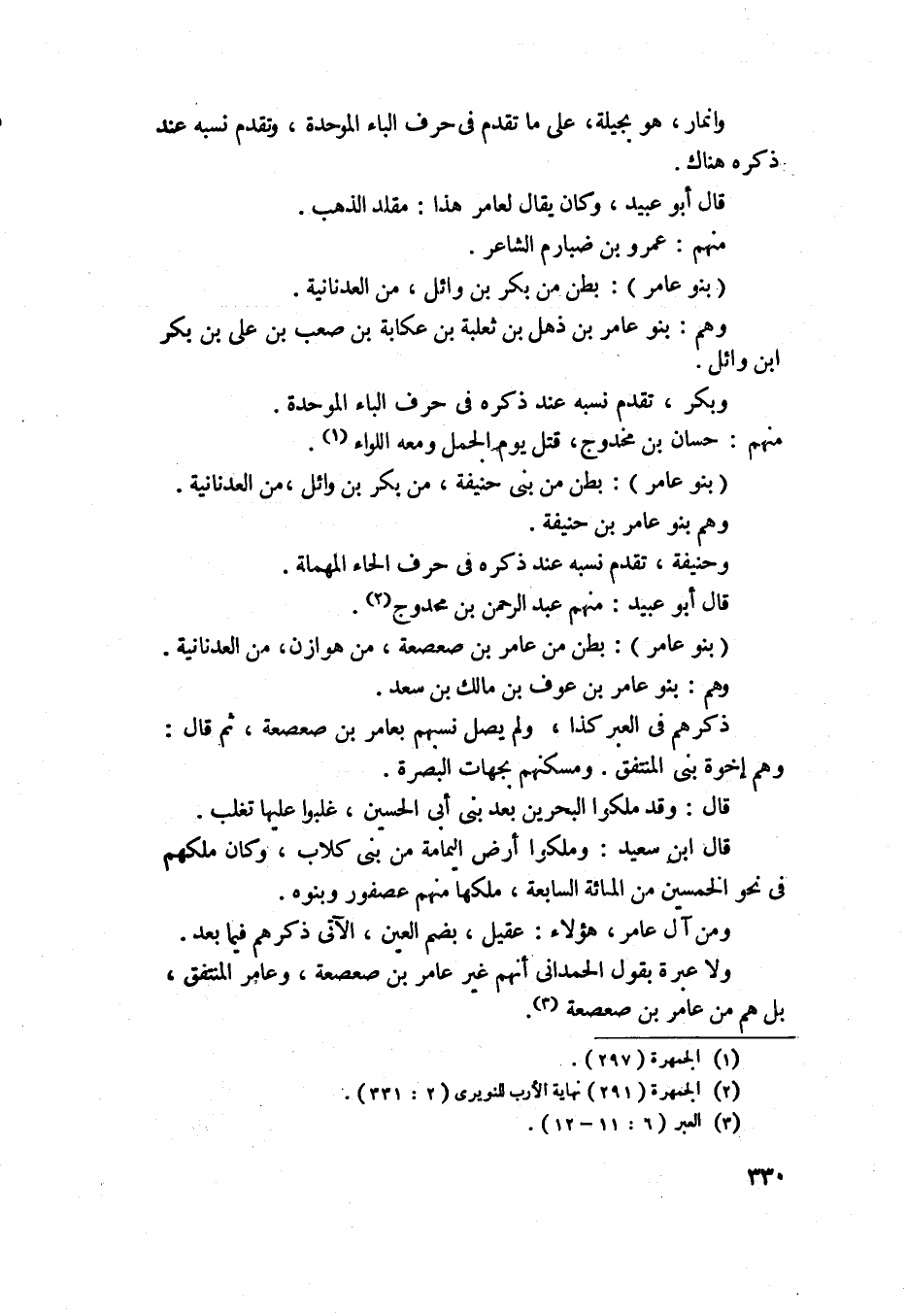 1182 - بنو عامر - بطن من بكر بن وائل من العدناينة، وهم بنو عام رابن ذهل بن ثعلبة بن عكابة بن صعب بن علي بن بكر بن وائل، وبكر تقدم نسبه عند ذكره في حرف الباء الموحدة، منهم حسان بن مخدوج قتل يوم الجمل ومعه اللواء.