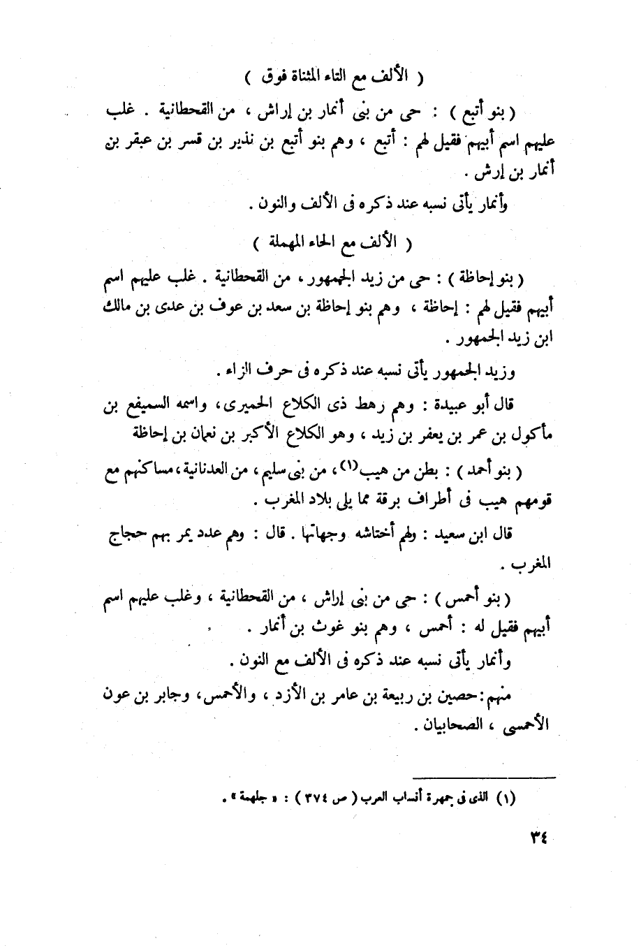 10 - بنو أتبع - حي من بني أنمار نب أراش من القحطانية، غلب عليهم اسم أبيهم فقيل لهم أتبع، وهم بنو أتبع بن نذير بن قسر بن عبقر بن أنمار بن أراش، وأنمار يأتي نسبه عند ذكره في الألف مع النون.