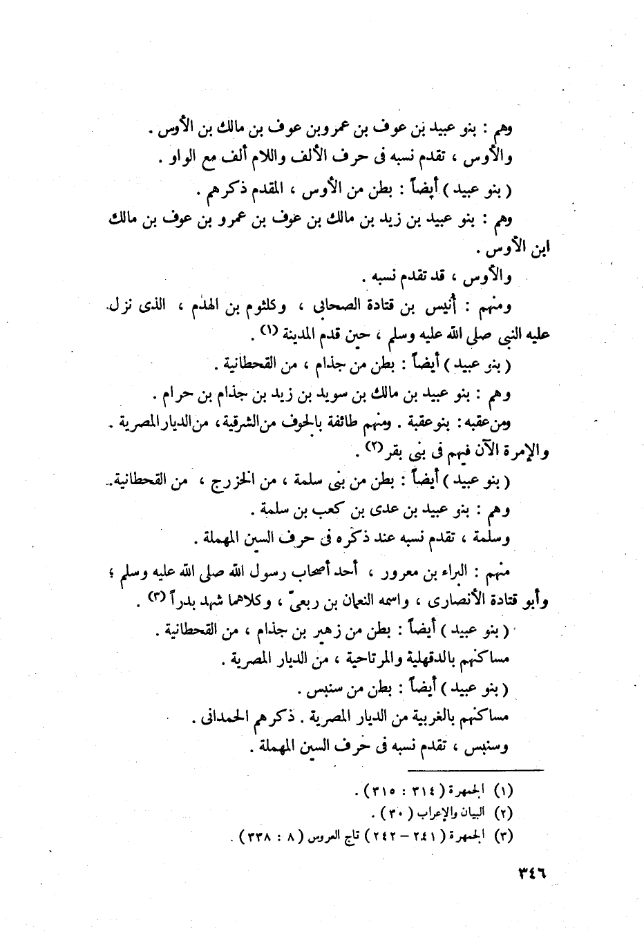1246 - بنو عبيد - أيضاً - بطن من الأوس المتقدم ذكرهم وهم بنوعبيد ابن زيد بن مالك بن عوف بن عمرو بن عوف بن مالك بن الأوس، والأوس قد قدم نسبه.