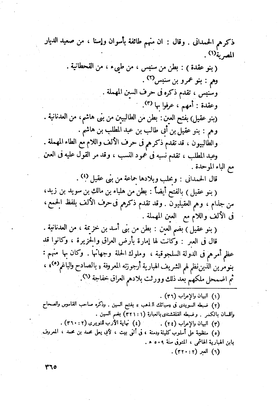 1323 - بنو عقيل - بضم العين - بطن من بني أسد بن خزيمة من العدنانية، قال في العبر: وكانت لهم امارة بأرض العراق والجزيرة، وكانوا قد عظم أمرهم في الدولة السلجوقية، وملوك الحلة وجهاتها، وكان بها، منهم بنو يزيد الذين نظم لهم الشريف ابن الهبارية الهباري ارجوزته المعروفة بالصادح والباغم، ثم اضمحل ملكهم بعد ذلك وورثت بلادهم بالعراق خفاجة.