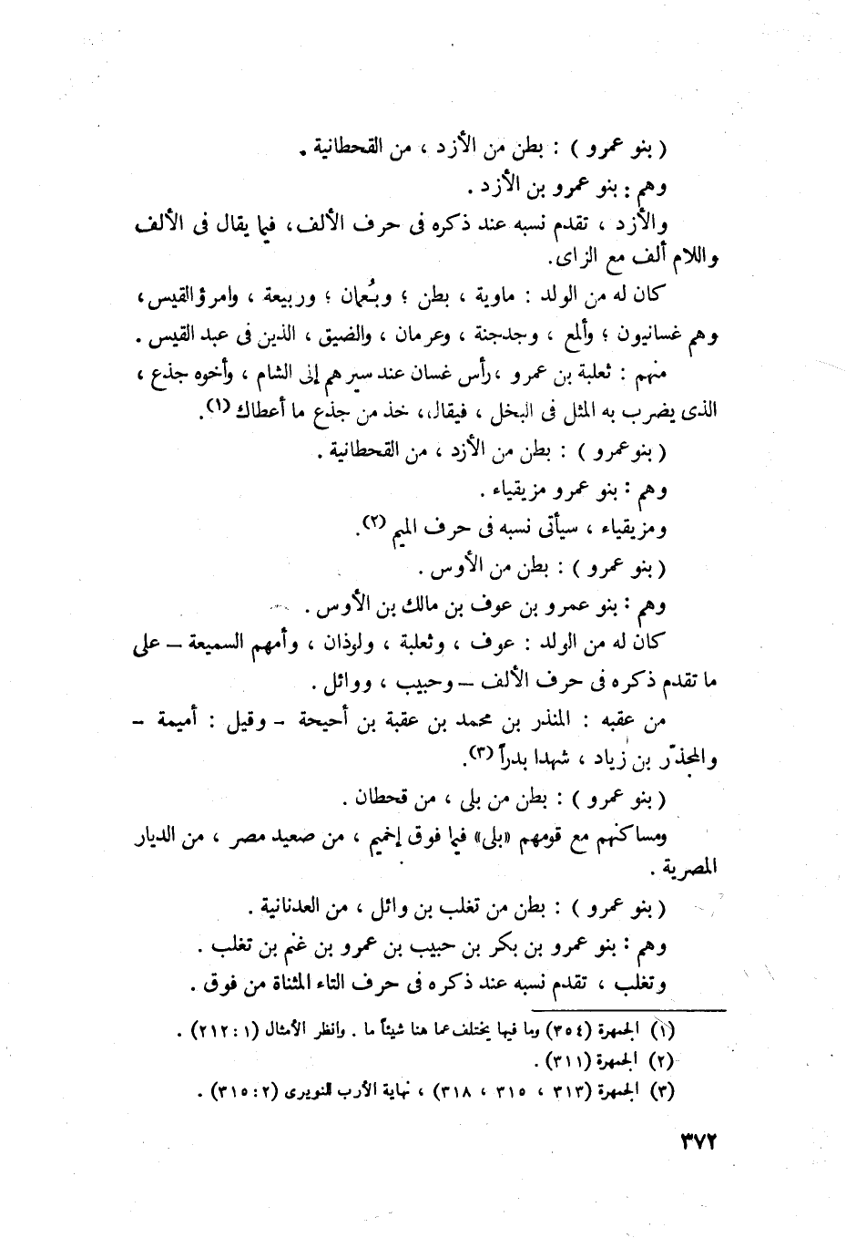 1344 - بنو عمرو - أيضاً - بطن من الازد من القحطانية، وهم بنو عمرو ابن مزيقيا، ومزيقيا سيأتي نسبه في حرف الميم.