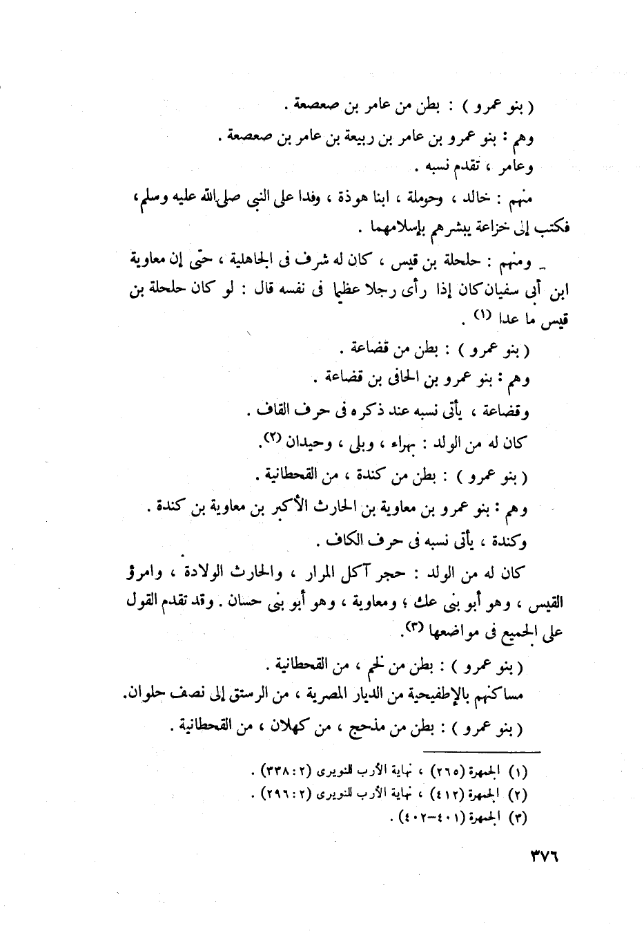 1367 - بنو عمرو - أيضاً - بطن من لخم من القحطانية، مساكنهم بالاطفيحية من الديار المصرية من الرستق الى نصف حلوان.
