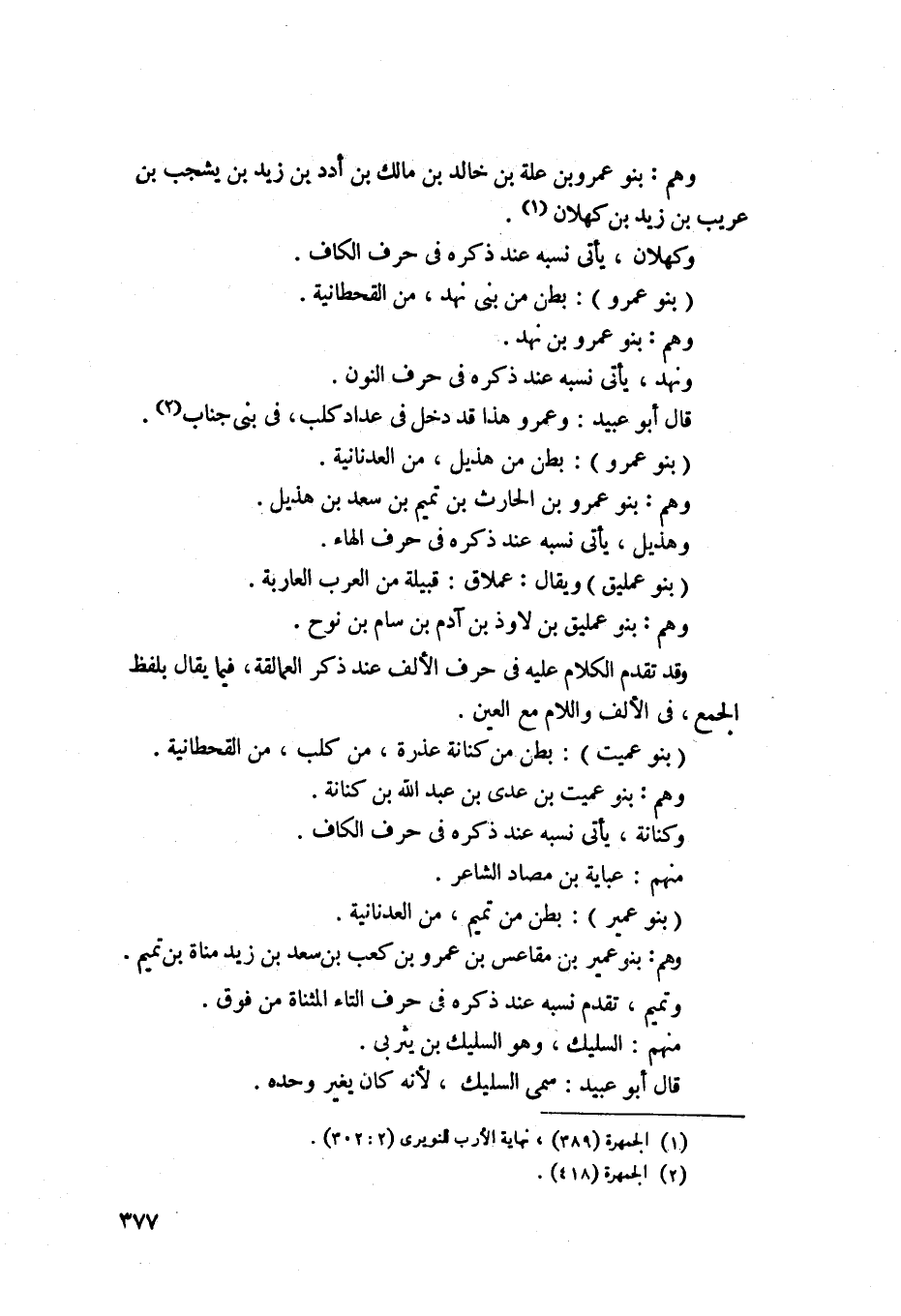 1370 - بنو عمرو - أيضاً - بطن من هذيل من العدنانية، وهم بنو عمرو ابن الحارث بن تميم بن سعد بن هذيل، وهذيل يأتي نسبه عند ذكره في حرف الهاء.