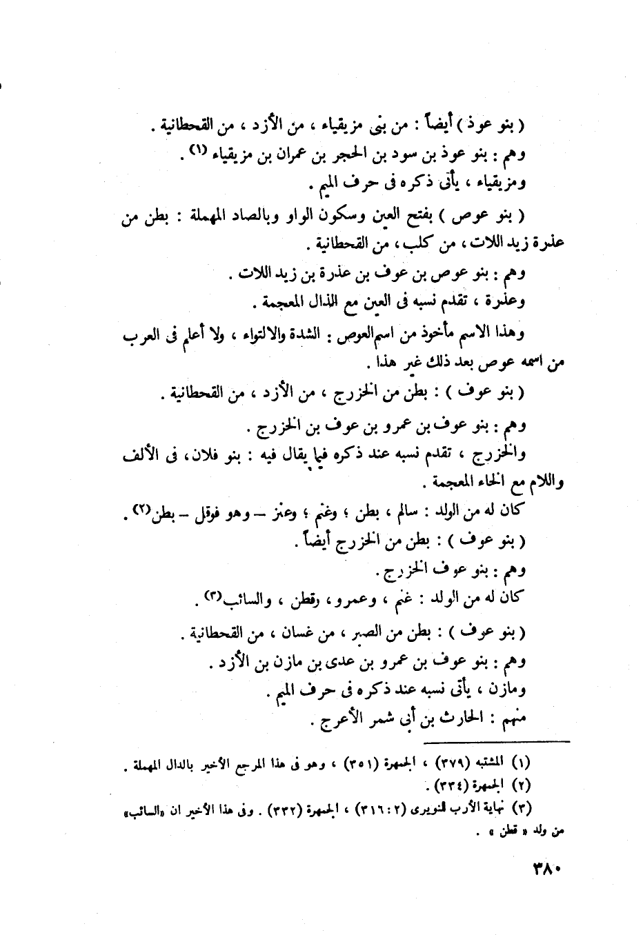1391 - بنوعوف - بطن من الصبر من غسان من القحطانية، وهم بنو عوف بن عمرو بن عدي بن عمرو بن مازن بن الازد، ومازن يأتي نسبه عند ذكره في حرف الميم، منهم الحارث بن أبي سمر الاعرج.