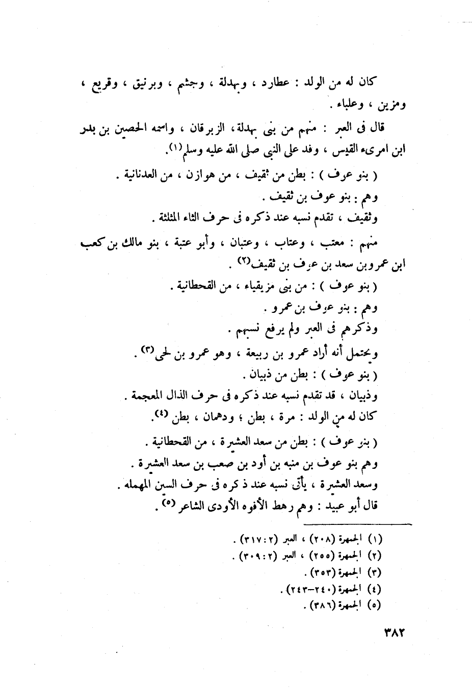 1399 - بنو عوف - أيضاً - بطن من ذبيان، وهم بنو عوف بن سعد بن ذبيان، وذبيان قد تقدم نسبه عند ذكره في حرف الذال المعجمة، كان له من الولد مرة بطن، ودهمان بطن بني مرة.