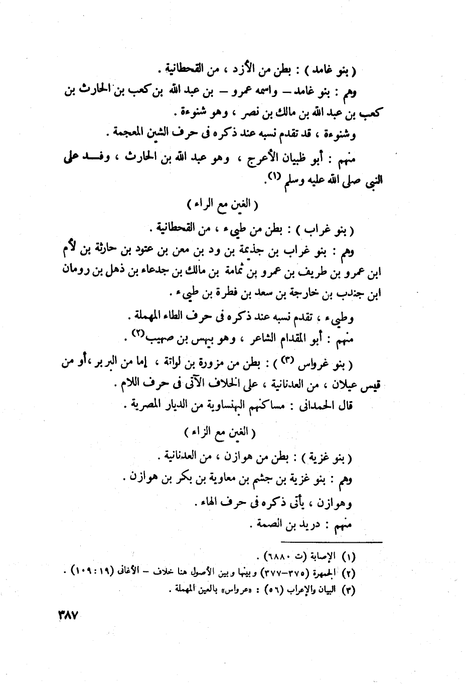 1417 - بنو غائد - بطن من شنؤة من الازد من القحطانية، وهم بنو غائد واسمه عمرو بن عبد الله بن كعب بن الحارث بن كعب بن عبد الله بن مالك ابن نصر وهو شنؤة، وقد تقدم نسبه عند ذكره في حرف الشين المعجمة، منهم أبو طبيان الاعرج، وهو عبد شمس بن الحارث وفد على النبي صلى الله عليه وسلم.