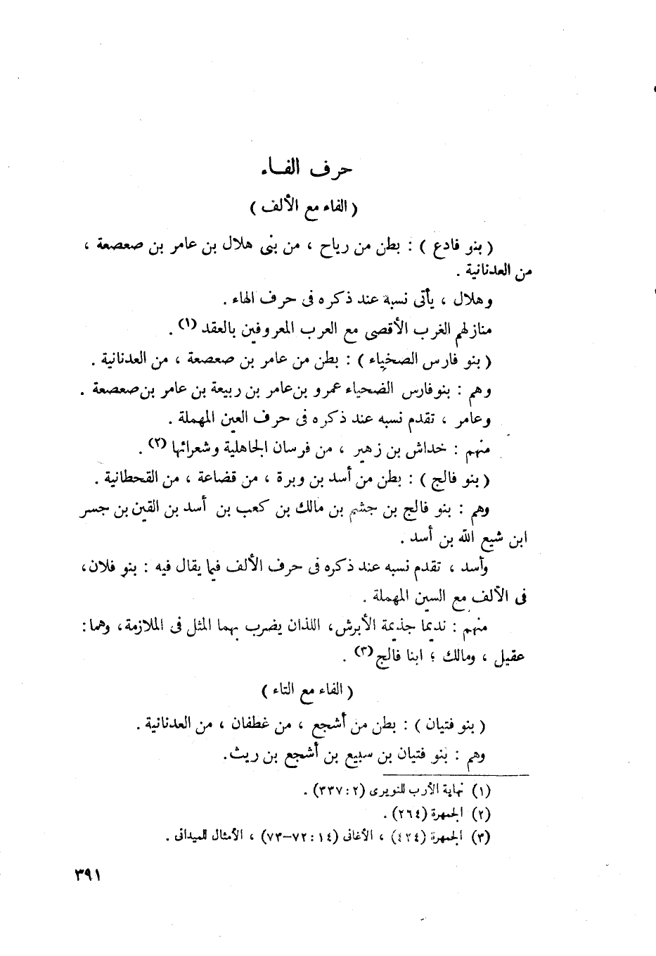 1434 - بنو فارج - بطن من أسد بن وبرة من قضاعة من القحطانية، بنو فارج بن جشم بن مالك بن كعب بن أسد بن القيس بن جسر بن سبع اللات بن أسد، وأسد تقدم نسبه عند ذكره في حرف الالف فيما يقال فيه بنو فلان في الالف مع السين المهملة، نديما جذيمة الابرش اللذان يضرب بهما المثل في الملازمة، وهما عقيل ومالك ابنا فارج.