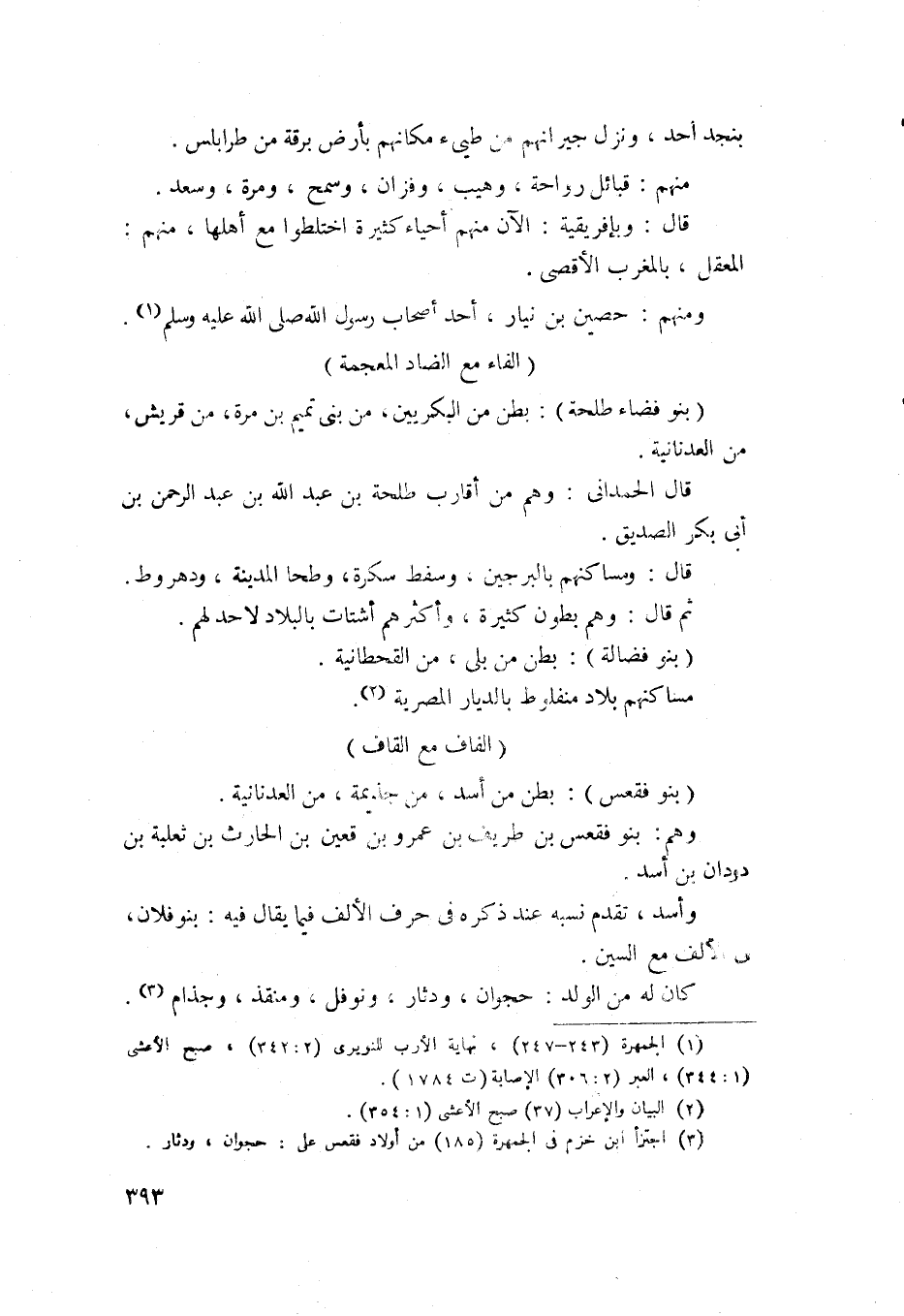 1441 - بنو فضالة - بطن من بلي من القحطانية، مساكنهم بلاد منفلوط بالديار المصرية.