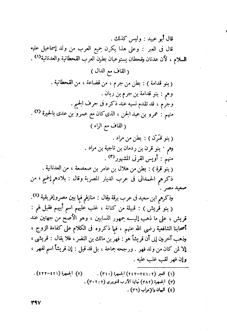 قال أبو عبيد: وليس كذلك، قال في العبر: وعلى هذا يكون جمع العرب من ولد اسماعيل عليه السلام، لان عدنان وقحطان يستوعبان بطون العرب القحطانية والعدنانية.