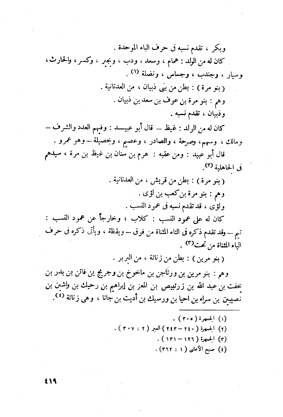 1547 - بنو مرة - أيضاً - بطن من قريش من العدنانية، وهم بنو مرة بن كعب بن لوي، وقد تقدم نسبه في عمود النسب، كان له من الولد على عمود النسب كلاب، وخارجا عن عمود النسب وقد تقدم نسبه عند ذكره في حرف التاء المثناة فوق، ويقظة ويأتي ذكره في حرف الياء المثناة تحت.