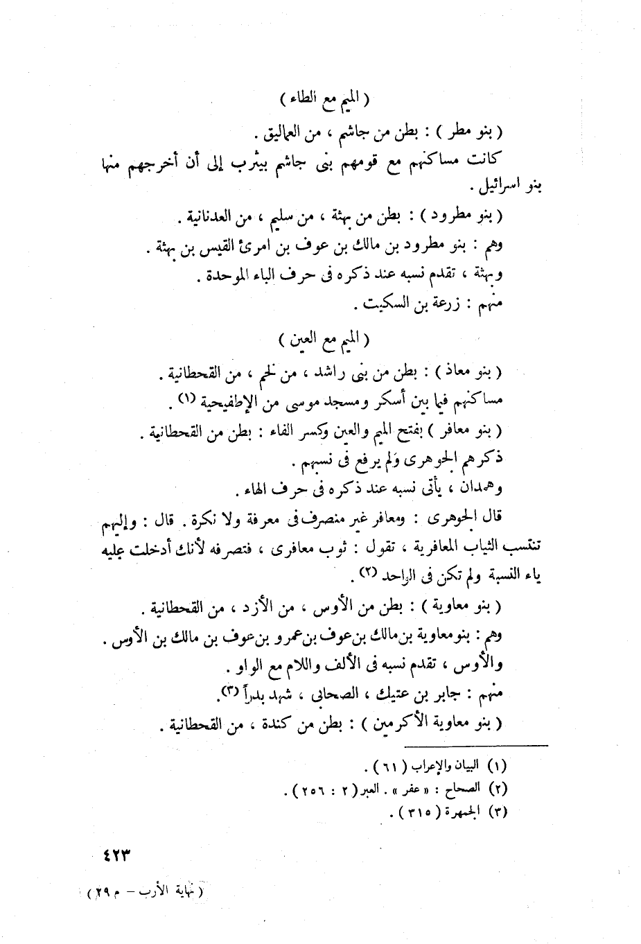 1567 - بنو معاد - بطن من بني راشد من لخم من القحطانية، مساكنهم فيما بين اسكر ومسجد موسى من الاطفيحية.