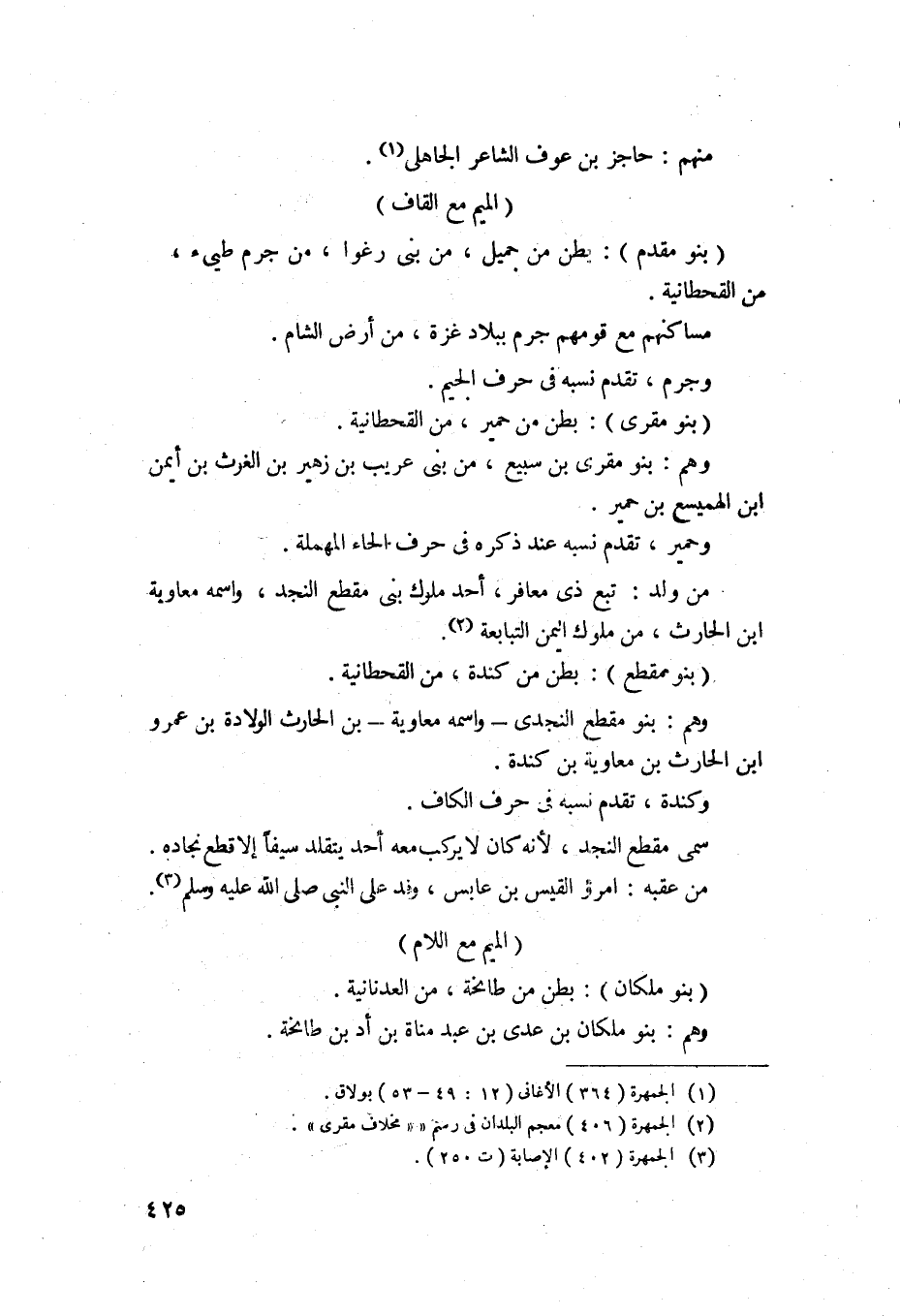 1575 - بنو مقدام - بطن من جميل من بني رغوا من جرم طي من القحطانية، مساكنهم مع قومهم جرم ببلاد غزة من ارض الشام، وجرم تقدم نسبه في حرم الجيم.