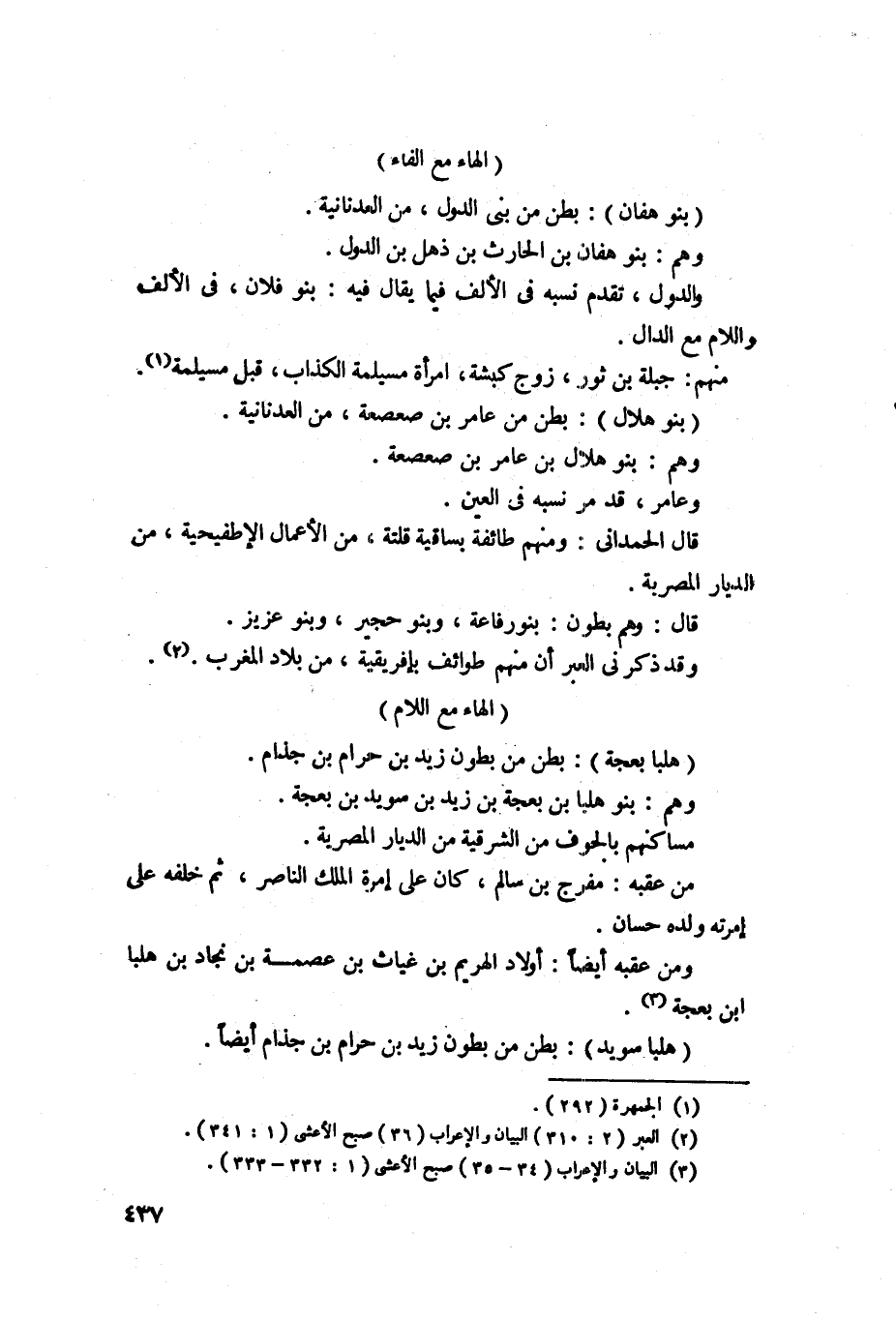 1618 - بنو هفان - بطن من بني الدؤل من العدنانية، وهم بنو هفان بن الحارث بن ذهل بن الدؤل، والدؤل تقدم نسبه في حرف الالف فيما يقال فيه بنو فلان في الالف واللام مع الدال، منهم جبيلة بن ثور زوج كسبة امرأة مسيلمة الكذاب قبل مسيلمة.