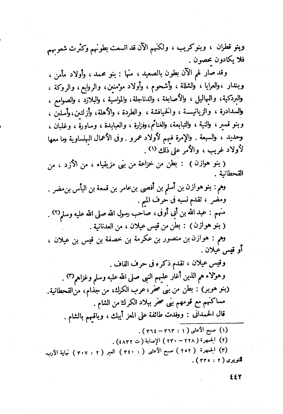 1634 - بنو هوزان - بطن من قيس من العدنانية، وهم بنو هوزان ابن منصور بن عكرمة بن خصفة بن قيس عيلان، وقيس عيلان تقدم نسبه في حرف القاف، وهؤلاء هم الذين اغار عليهم النبي صلى الله عليه وسلم وغزاهم.