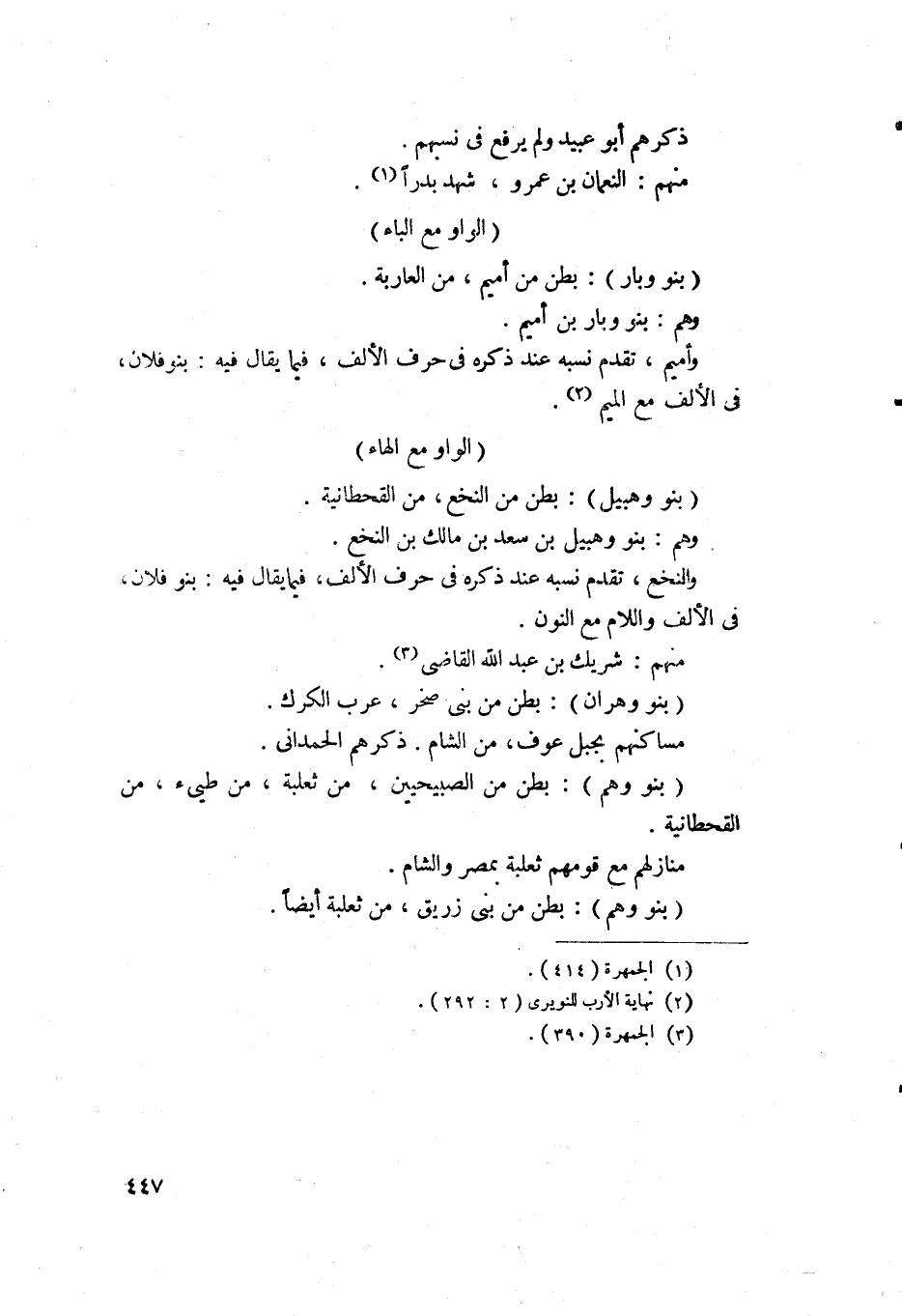 1654 - بنو وهم - بطن من الصبيحيين من ثعلبة من طي من القحطانية منازلهم مع قومهم ثعلبة بمصر والشام.