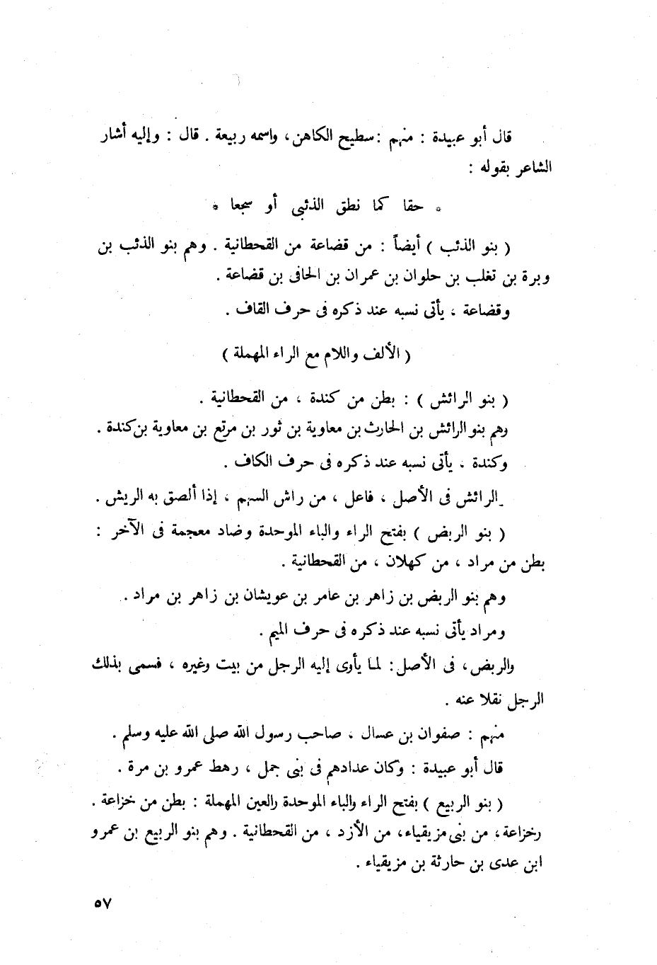 117 - بنو الربعة - بفتح الراء والباء الموحدة والعين المهملة، بطن من خزاعة من بني مزيقياء من الازد من القحطانية، وهم بنو الربعة بن عمرو بن عدي بن حارثة بن مزيقياء،