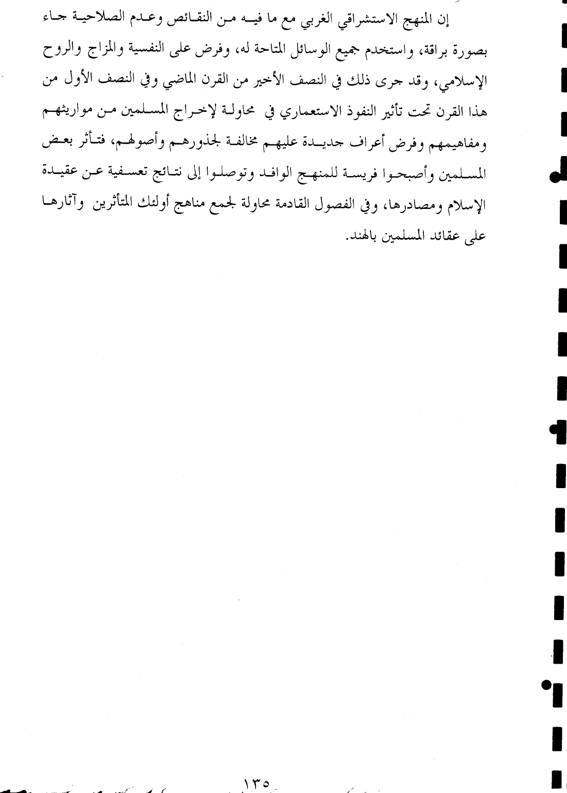 إن المنهج الاستشراقي الغربي مع ما فيه من النقائص وعدم الصلاحية جاء بصورة براقة، واستخدم جميع الوسائل المتاحة له، وفرض على النفسية والمزاج والروح الإسلامي، وقد جرى ذلك في النصف الأخير من القرن الماضي وفي النصف الأول من هذا القرن تحت تأثير النفوذ الاستعماري في محاولة لإخراج المسلمين من مواريثهم ومفاهيمهم وفرض أعراف جديدة عليهم مخالفة لجذورهم وأصولهم، فتأثر بعض المسلمين وأصبحوا فريسة للمنهج الوافد وتوصلوا إلى نتائج تعسفية عن عقيدة الإسلام ومصادرها، وفي الفصول القادمة محاولة لجمع مناهج أولئك المتأثرين وآثارها على عقائد المسلمين بالهند.