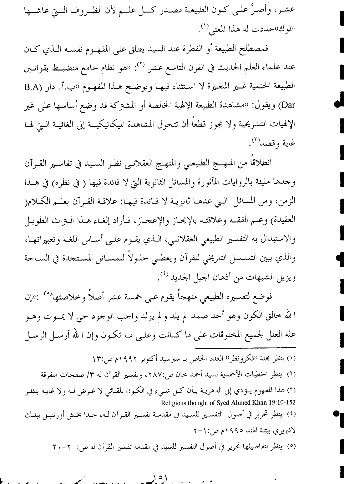 (¬٢) ينظر الخطبات الأحمدية لسيد أحمد خان ص: ٢٨٧، وتفسير القرآن له ٣ صفحات متفرقة.