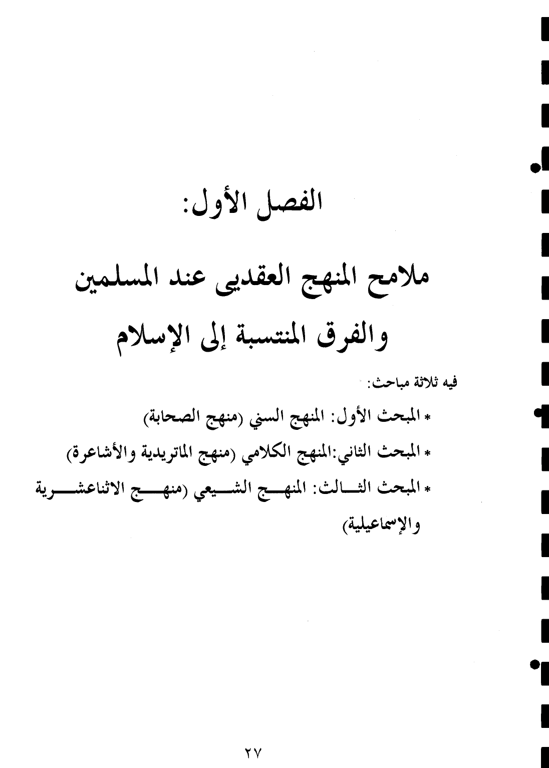 الفصل الأول: ملامح المنهج العقديى عند المسلمين والفرق المنتسبة إلى الإسلام