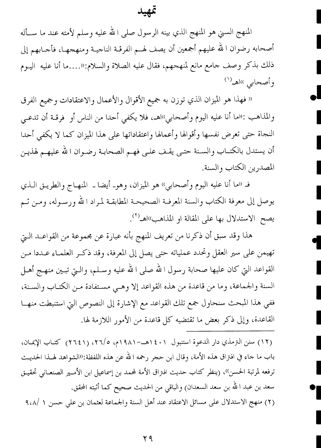 (¬٢) منهج الاستدلال على مسائل الاعتقاد عند أهل السنة والجماعة لعثمان بن علي حسن ١/ ٨، ٩.