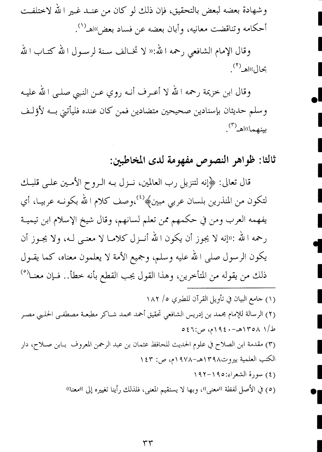 ثالثا: ظواهر النصوص مفهومة لدى المخاطبين: