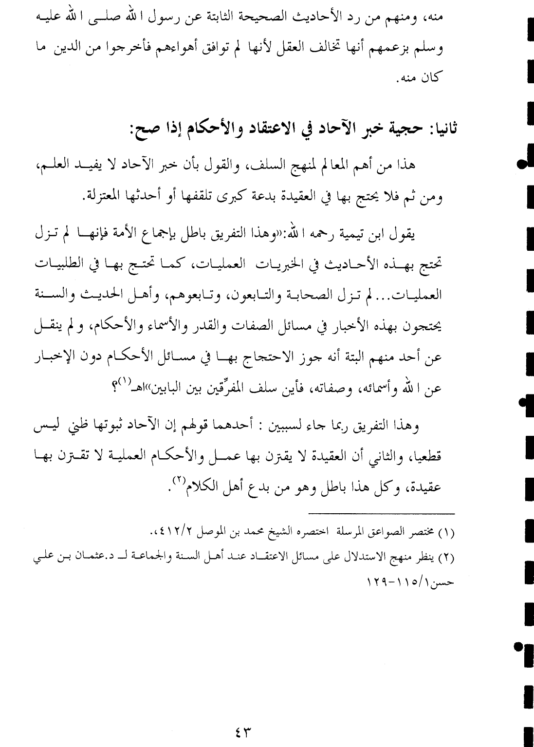 (¬٢) ينظر منهج الاستدلال على مسائل الاعتقاد عند أهل السنة والجماعة لـ د. عثمان بن علي حسن ١/ ١١٥ - ١٢٩.
