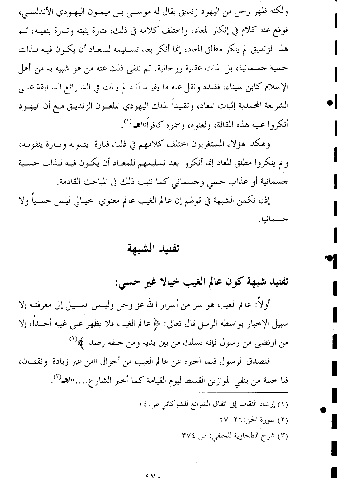 إذن تكمن الشبهة في قولهم إن عالم الغيب عالم معنوي خيالي ليس حسيًا ولا جسمانيا.