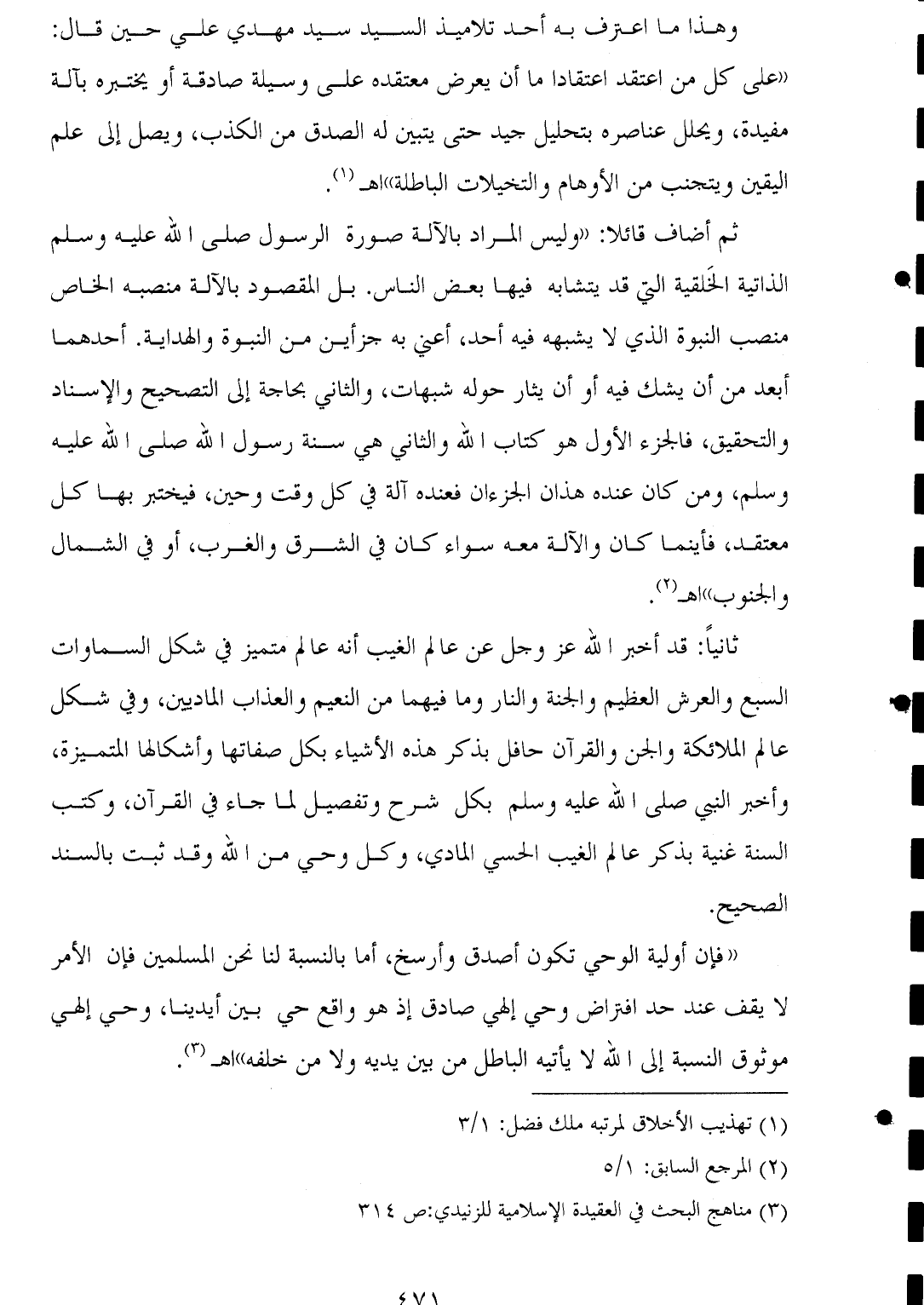 (¬٣) مناهج البحث في العقيدة الإسلامية للزنيدي: ص ٣١٤.
