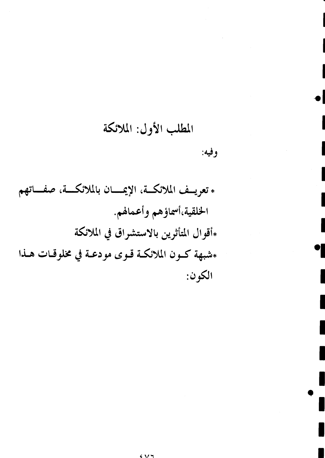 * تعريف الملائكة، الإيمان بالملائكة، صفاتهم الخلقية، أسماؤهم وأعمالهم.