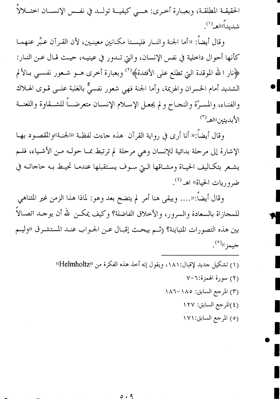(¬١) تشكيل جديد لإقبال: ١٨١، ويقول إنه أخذ هذه الفكرة من " Helmholtz".