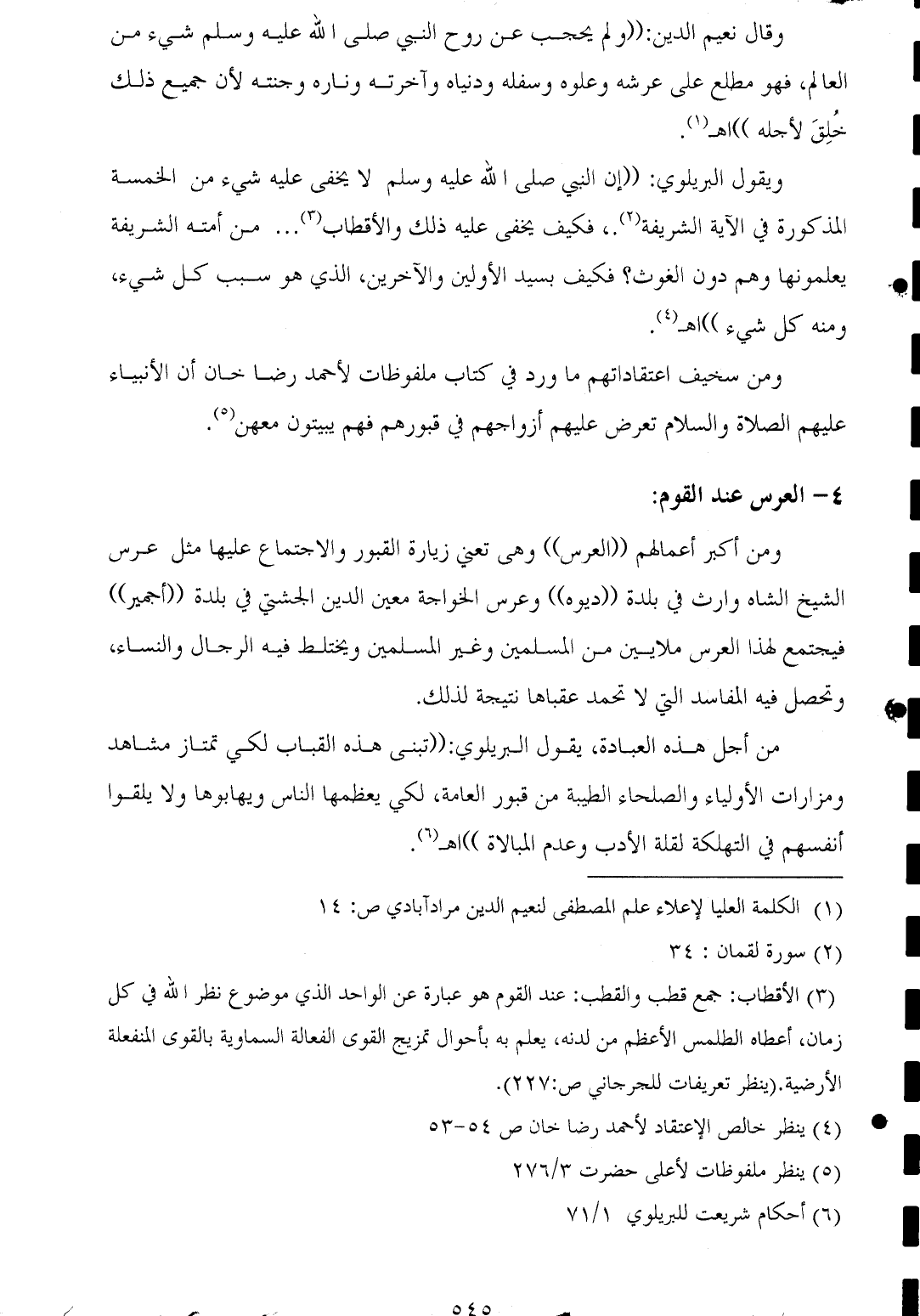 (¬٤) ينظر خالص الإعتقاد لأحمد رضا خان ص ٥٤ - ٥٣.