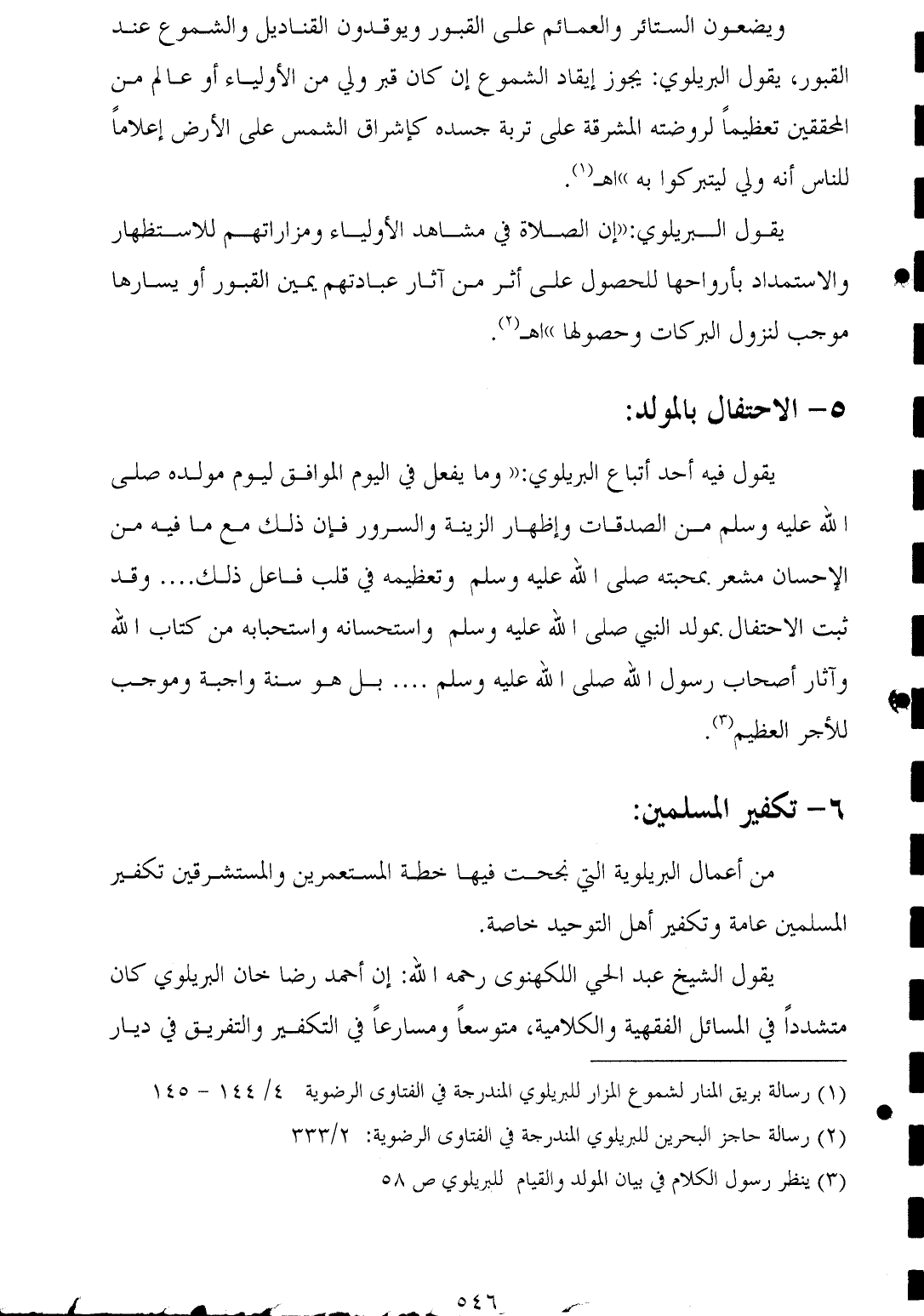 من أعمال البريلوية التي نجحت فيها خطة المستعمرين والمستشرقين تكفير المسلمين عامة وتكفير أهل التوحيد خاصة.