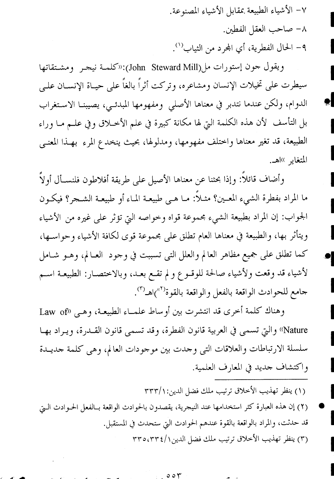 (¬٣) ينظر تهذيب الأخلاق ترتيب ملك فضل الدين ١/ ٣٣٤، ٣٣٥.
