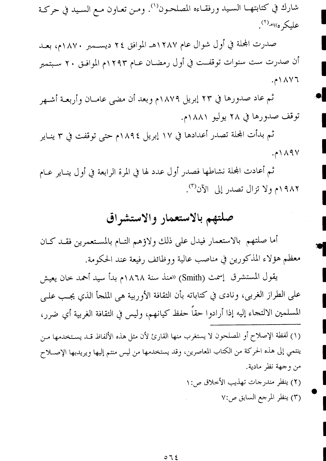 (¬١) لفظة الإصلاح أو المصلحون لا يستغرب منها القارئ لأن مثل هذه الألفاظ قد يستخدمها من ينتمي إلى هذه الحركة من الكتاب المعاصرين، وقد يستخدمها من ليس منتم إليها ويريد بها الإصلاح من وجهة نظر مادية.
