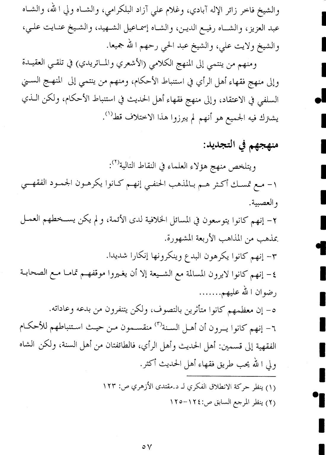 ٦ - إنهم كانوا يرون أن أهل السنة (¬٣) منقسمون من حيث استنباطهم للأحكام الفقهية إلى قسمين: أهل الحديث وأهل الرأي، فالطائفتان من أهل السنة، ولكن الشاه ولي الله يحب طريق فقهاء أهل الحديث أكثر.
