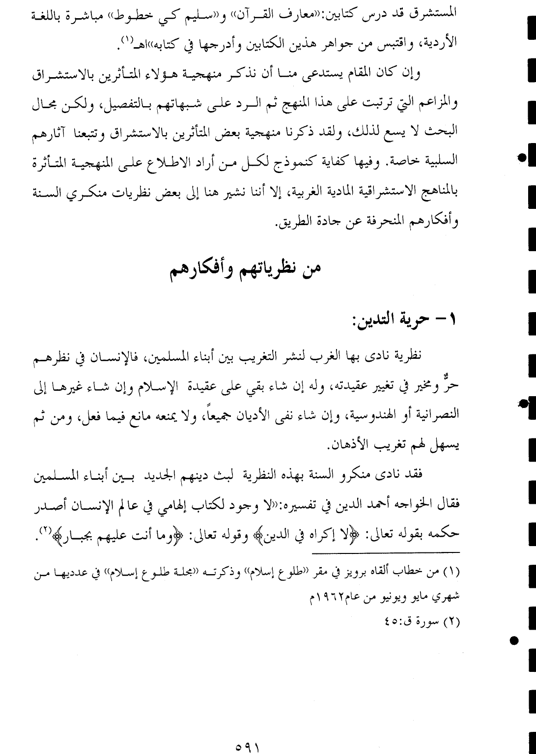 (¬١) من خطاب ألقاه برويز في مقر "طلوع إسلام" وذكرته "مجلة طلوع إسلام" في عدديها من شهري مايو ويونيو من عام ١٩٦٢ م.